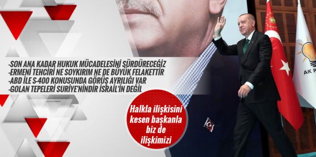 ABD ile S-400 konusunda ciddi bir görüş ayrılığı halindeyiz. Kim ne derse desin bizim için asıl önemli olan ülkemizin istikbalidir. Suriye’deki terör bataklığını kurutmaya yönelik adımları atmayı ve derhal S400 ve benzeri güvenlik tahkimatlarını yapmayı sürdüreceğiz. Şu şöyle demiş bu böyle demiş hepsi bir kenara. Biz ne diyoruz o önemli.