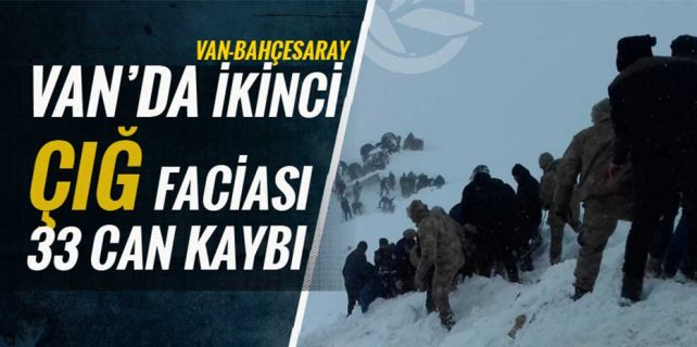 Bahçesaray ilçesinde çığ altında kalan minibüsteki iki kişiyi arama çalışmalarını yürüten ekiplerin üzerine çığ düştü. Çalışmalarda 30’dan fazla kişi sağ kurtarılırken; 33 cansız bedene ulaşıldı.