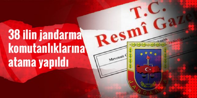 Cumhurbaşkanı Recep Tayyip Erdoğan’ın imzasıyla Resmi Gazete’de yayımlanan karara göre 38 ilin jandarma komutanlıklarına atama yapıldı.