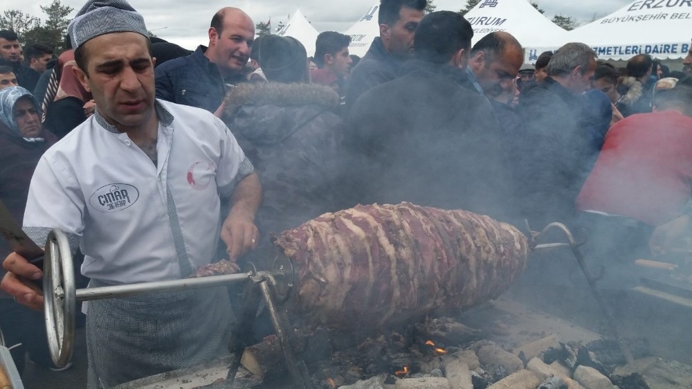 Erzurum Lokantacılar Odası Başkanı Zeki Pınar’da konuşmasında, “Lokantacılar Odası olarak Kültür ve Turizm İl Müdürlüğü ile ortaklaşa yaptığımız programda Cağ Kebabı konusunda Erzurum’u en iyi şekilde temsil etmek için burada bulunuyoruz. Yaklaşık 500 kilogram vatandaşa et ikramımız olacak” diye konuştu.