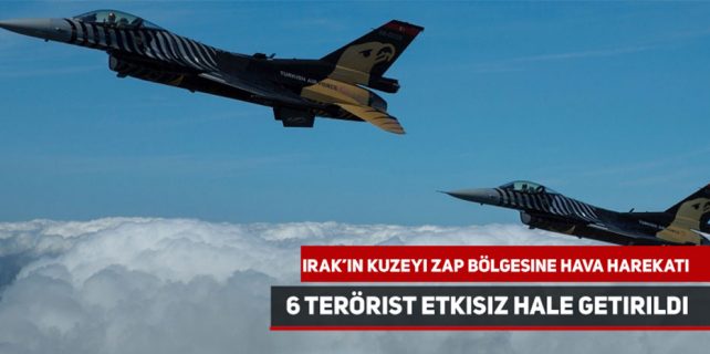 Türk Silahlı Kuvvetlerince Irak’ın kuzeyi Zap bölgesine düzenlenen hava harekatında 6 terörist etkisiz hale getirildi.