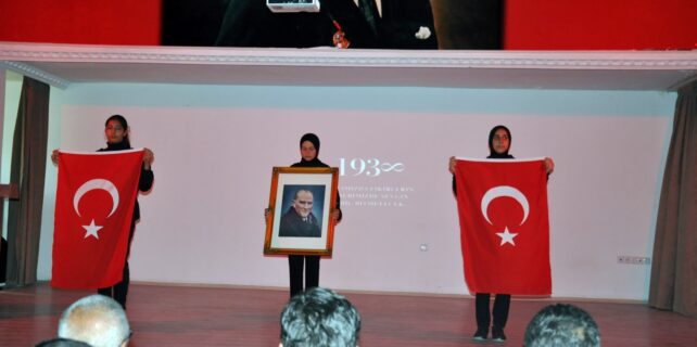 Pasinler Anadolu Lisesi çok amaçlı salonunda Ulu Önder Mustafa Kemal Atatürk’ü anma programında okul öğrencileri tarafından oratoryo gösterisi, şiirler ve Ulu Önder Atatürk’ün hayatından kesitler anlatıldı.