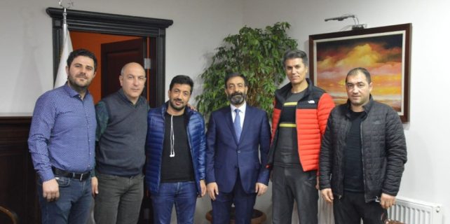 Türkiye Curling Federasyonu Başkanı Kenan Şebin, Başkanvekili Ahmet Çelebi ile ER-GÜR-DER yönetimi Baro Başkanı Talat Göğebakan’ı ziyaret etti. Şebin, Göğebakan’a Milli takım forması hediye etti.