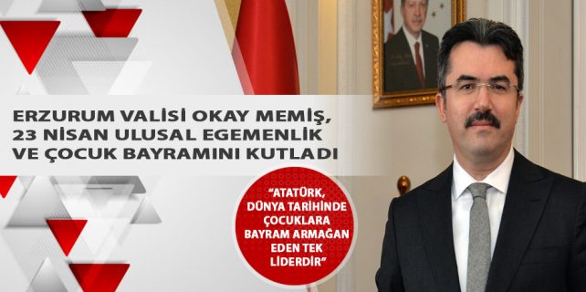 Erzurum Valisi Okay Memiş, 23 Nisan Ulusal Egemenlik ve Çocuk Bayramı dolayısıyla bir kutlama mesajı yayınladı.