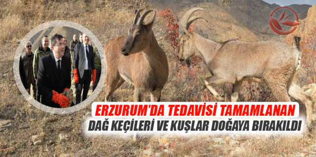 Doğa Koruma ve Milli Parklar (DKMP) Erzurum Bölge Müdürlüğünce tedavileri tamamlanan yaban hayvanları doğaya salındı. DKMP görevlilerince yaralı ve bitkin halde bulunan iki dağ keçisi, çayır delicesi ile iki kızıl şahinin tedavileri tamamlandı.