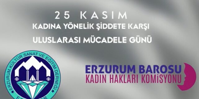 25 Kasım Kadına Yönelik Şiddetle Mücadele Gününde, kadına yönelik şiddet olgusunu gündeme taşımak ve soruna çözüm getirilmesi konusunda farkındalık oluşturmak amaçlayan Erzurum Barosu Kadın Kolları ile Erzurum Kültür, Sanat ve Eğitim Derneği (ERSANDER) tarafından bir video hazırlandı. Videoda ERSANDER Kadın Kolları Başkanı Sevnur İçyar, Erzurum Barosu Kadın Kolları Komisyon Başkanı İlknur Sarcan, “Kadına yönelik şiddete karşı mücadeleye destek vermek ve farkındalık yapmak istedik” dediler.