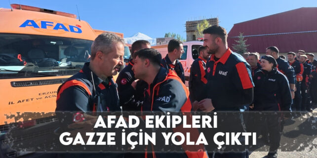 Erzurum’dan da 10 kişilik arama kurtarma ve Kimyasal, Biyolojik, Radyolojik, Nükleer Tehditler (KBRN) ekibi 3 araçla bugün yola çıktı. Ekip, kara yoluyla Ankara’ya, oradan ise hava yoluyla Gazze’ye geçecek. Henüz dönüş tarihleri belirlenmeyen ekiplerin, sürece göre dönüşümlü olarak uzun süre bölgede kalacağı öğrenildi.