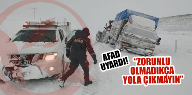 ÜLKE GENELİNDE YAŞANAN AŞIRI KAR YAĞIŞLARI NEDENİYLE MÜCADELE DEVAM EDİYOR. AFAD, METEOROLOJİK UYARILARIN GÖZ ÖNÜNE ALINARAK ZORUNLU OLMADIKÇA YOLA ÇIKILMAMASI UYARISINDA BULUNDU.