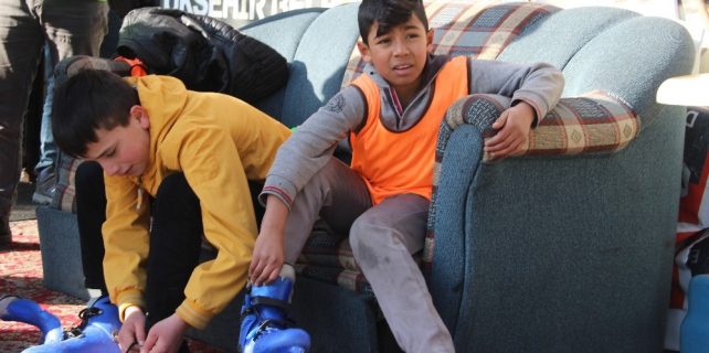 Ülkelerinde ki iç savaştan kaçıp Türkiye’ye sığınan Afganlı ve Suriyeli çocuklar Erzurum’da buz pateni eğitimi veriliyor.