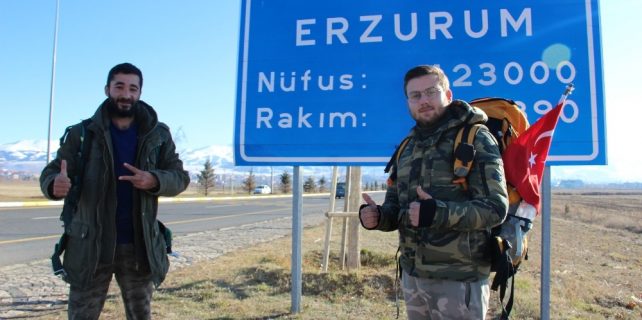 SOSYAL MEDYADA KENDİLERİNE ‘SIRT ÇANTALI GEZENLER ‘ ADINI KOYAN YAĞIZ KAŞIKÇIOĞLU (22) İLE TAHSİN SAVAŞ (29), 29 EKİM 2018 TARİHİNDE BODRUM’DAN YOLA ÇIKARAK OTOSTOPLA ERZURUM’A ULAŞTILAR
