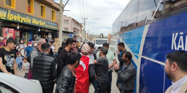 Otobüsün gelmesi ile vedalar yapılırken duygusal anlar yaşandı.