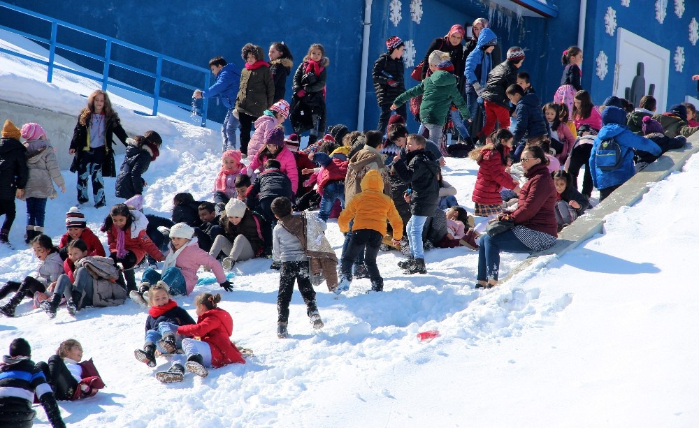 Atlama kulelerinden atlayış gerçekleştiren çocuklar nefes kesti. Bazı çocuklar da atlayış yaptıktan sonra hızlarını alamayıp düştü. Doyasıya bir gün geçiren öğrenciler ayrıca bol bol kar topu oynayıp, karda yuvarlanmanın tadını çıkardı.