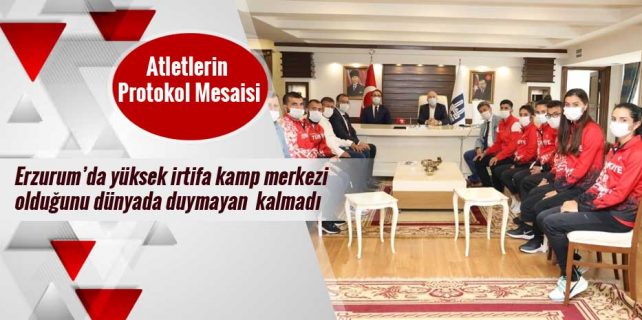 Milli Atletler, hazırlıklarını sürdürürken, protokolle de bir araya geldi. Sporcular Eski Sağlık Bakanı ve AK Parti Erzurum Milletvekili Prof. Dr. Recep Akdağ, Vali Okay Memiş ile bir araya gelirken Büyükşehir Belediye Başkanı Mehmet Sekmen’i de ziyaret etti.