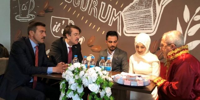 Milletvekili Aydemir Hınıs’taki ziyareti kapsamında daha sonra Hınıs Belediye Başkanı Eren’in kıydığı nikahta şahit olarak Ahmet ve Şeydanur çiftinin mutluluğunu paylaştı. iki cihan saadeti diledi.
