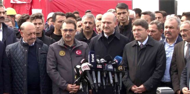 Bakan Bilgin ise, “Acının üzerine konuşmak çok zor. Ateş düştüğü ocağı yakar ama bugün bu acıyı hepimiz hissediyoruz. Bu zor dönemde ateş karşısında yerin altında mücadele eden işçi kardeşlerimize onların mücadelesine saygı duyuyorum. Onları tebrik ediyorum. Milletimizin acısı büyük, madencilerin acısı büyük. Emekçilerimizin böyle bir acıyla onlarla karşılaşmak, onların yanında olmak çok hüzün verici bir şey. Allah yakınlarına ve madencilerine sabır versin, milletimizin başı sağ olsun” diye konuştu.