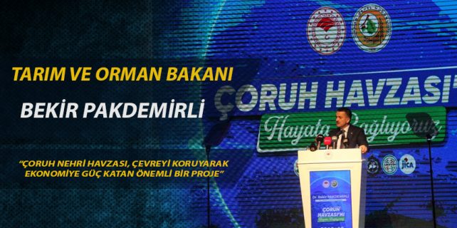 Tarım ve Orman Bakanı Bekir Pakdemirli, Erzurum’da katıldığı Çoruh Nehri Havzası Rehabilitasyon Projesi’nin kapanış toplantısında, “Artık doğanın yanında olan, toprağı, suyu, ormanları koruyan ve verimli kullanan sistemlere ve projelere daha fazla ihtiyaç duyduğumuz bir dönemdeyiz. İşte bugün, tamamlama aşamasına geldiğimiz Çoruh Nehri Havzası Rehabilitasyon Projesi, tam da bunu hedefleyen, çevreyi koruyarak ekonomiye güç katan önemli bir projedir” dedi.