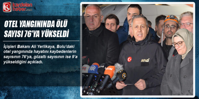 İçişleri Bakanı Ali Yerlikaya, Bolu’daki otel yangınında hayatını kaybedenlerin sayısının 76’ya, gözaltı sayısının ise 9’a yükseldiğini açıkladı. Yerlikaya, “Yarın son kez otelde AFAD ekiplerimiz, uzman ekiplerimiz son taramalarını yapacaklar” dedi.