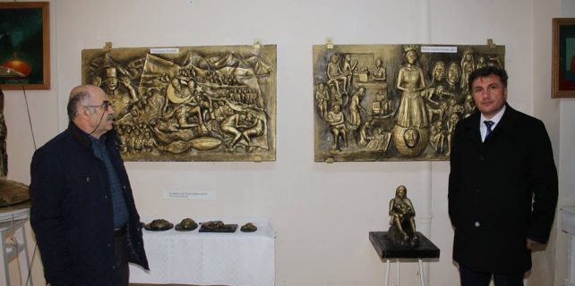 OLTU’DA EMEKLİ ÖĞRETMEN NEŞET DEMİRCAN ATÖLYESİNE AÇTIĞI RÖLYEF HEYKEL ÇALIŞMALARI İLE İLGİLİ SERGİ GÖRENLERİ ETKİLİYOR.