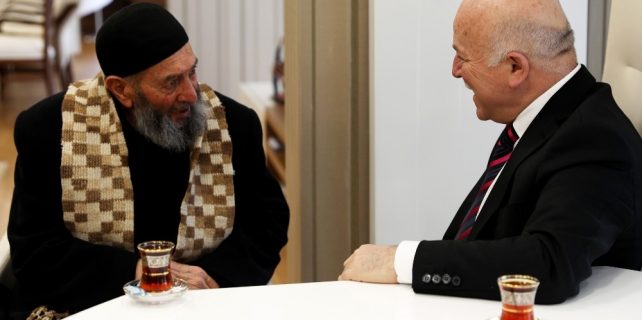 Erzurum’da hafta sonunda düzenlenen Kudüs Mitingi’ne gözyaşlarıyla damgasını vuran 78 yaşındaki Necip Bezmiş’i makamında misafir eden Başkan Sekmen, “Mukaddes değerlerimiz için ağlayan gözler ve yürekler var olduğu sürece, Müslümanlar için umut da hep var olacaktır. Allah, umudumuzu her daim canlı tutsun, bizleri kendisinden ümit kesmiş olanlardan etmesin!” niyazında bulundu.