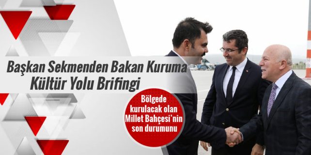 Büyükşehir Belediye Başkanı Mehmet Sekmen, Çevre ve Şehircilik Bakanı Murat Kurum’u bilgilendirirken, Kültür Yolu Projesi kapsamında Kale, Çifte Minareli Medrese ve Üç Kümbetler aksı üzerinde kurulacak olan Millet Bahçesi’ne çok özel bir yer ayırdı. Bu bölgenin Erzurum şehir merkezinde tarihin adeta odak noktası olduğunu dile getiren Erzurum Büyükşehir Belediye Başkanı Mehmet Sekmen, “Bu kültür mirasını hem kadim şehrimiz ve hem de turizmimiz açısından büyük bir fırsat olarak görüyoruz. Üç Kümbetler’i de içine alan bu projeye Millet Bahçesi gibi güzide bir çalışmayı eklemiş olmak; hem estetik ve hem de sosyo-kültürel açıdan büyük bir kazanç olacak. Sizlerin de destekleriyle Erzurum’a böylesine kıymetli bir projeyi armağan edecek olmak bizim için de büyük bir mutluluk olacak” diye konuştu.