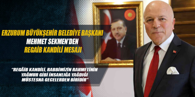 Erzurum Büyükşehir Belediye Başkanı Mehmet Sekmen, “Recep ayı içerisinde bulunan Regâib Kandili, Rabbimizin rahmetinin, affının ve lütfunun yağmur gibi insanlığa yağdığı müstesna gecelerden biridir” dedi.