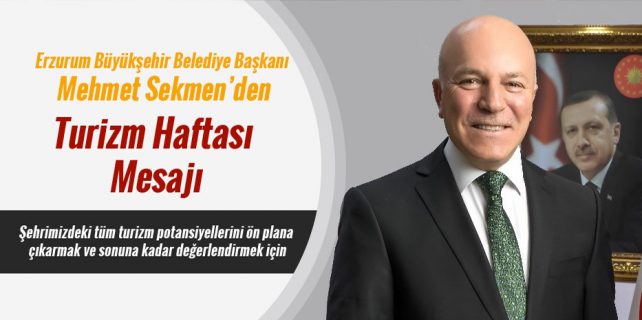 Erzurum Büyükşehir Belediye Başkanı Mehmet Sekmen, “Şehrimizdeki tüm turizm potansiyellerini ön plana çıkarmak ve sonuna kadar değerlendirmek için elimizden gelen gayreti gösteriyoruz” dedi. Büyükşehir Belediye Başkanı Mehmet Sekmen, 15-22 Nisan tarihleri arasında kutlanan Turizm Haftası dolayısıyla yayımladığı mesajda; Erzurum’un, tarihi ve kültürel zenginliklerinin yanı sıra tabii ve doğal güzellikleriyle de eşsiz bir turizm kenti olduğunun altını çizdi. Başkan Sekmen, Erzurum’da son 5 yıldır turizme yönelik çok özel çalışmalar yaptıklarını belirterek, “Bu sürecin sonunda ‘Erzurum’ denildiğinde akıllara artık sadece kış turizmi gelmeyecek. Erzurum’u turizmde öyle bir noktaya taşıyacağız ki; bu kadim şehir yılın 12 ayında da turist çekecek” diye konuştu.