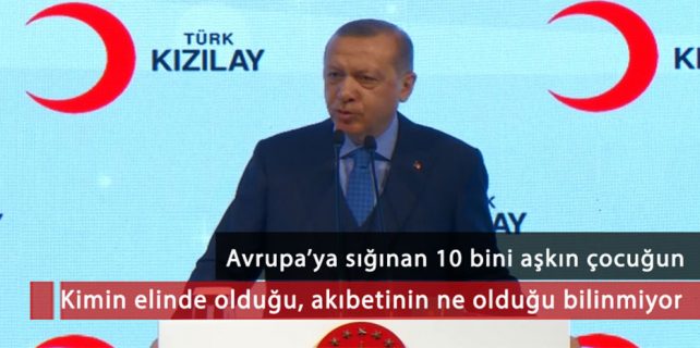 Batı dünyasının mülteci politikasını da sert sözlerle eleştiren Erdoğan, “Yurtlarını terk etmek zorunda kalan bu insanlara sözde insan hakları havarisi ülkeler gibi vebalı muamelesi yapmadık. Bugün dünyaya demokrasi ve medeniyet dersi verdiğini zanneden pek çok Batılı ülke mültecileri ötekileştiriyor, dışlıyor, onları tüm sorunlarının kaynağı olarak görüyor. Batılı siyasetçiler mülteci düşmanlığı üzerinden iktidara gelmenin hesaplarını yapıyor. Bilhassa Avrupa genelinde mültecileri ve yabancıları hedef alan ırkçı saldırılar gün geçtikçe artıyor. Suriye’deki savaştan kaçan ve Avrupa’ya sığınan 10 bini aşkın çocuğun nerede, kimin elinde olduğu, akıbetinin ne olduğu bilinmiyor” dedi.