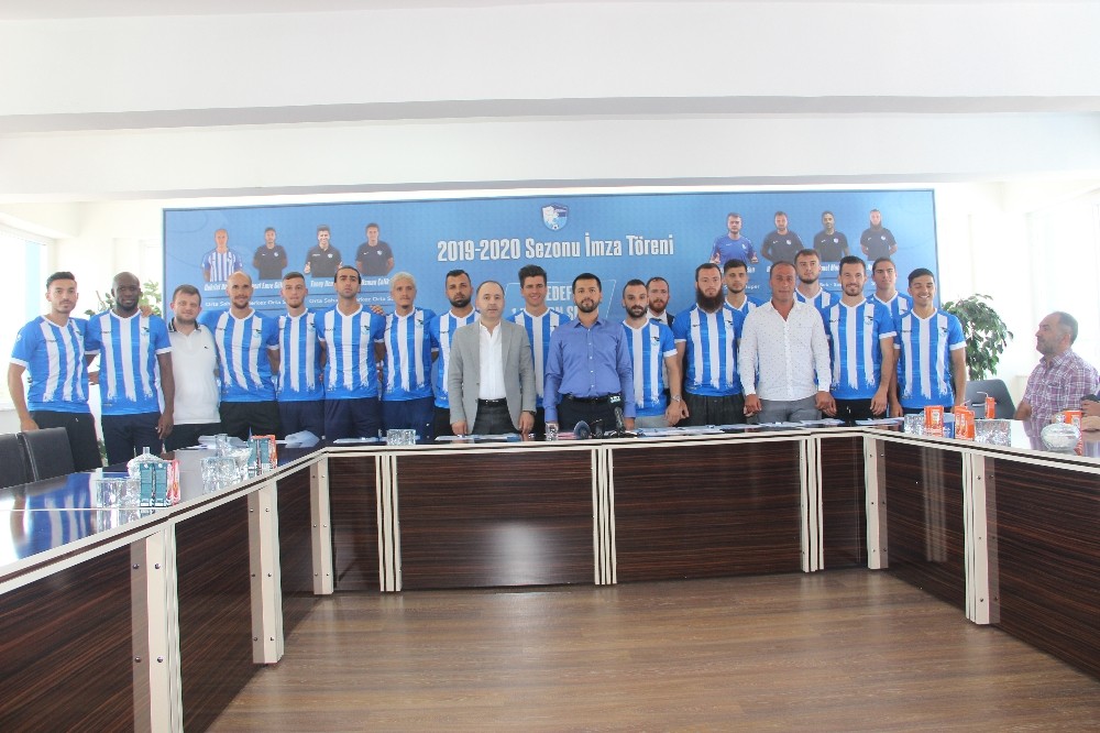 İmza törenin ardından futbolcular Başkan Hüseyin Üneş ve yönetim kurulu ile toplu fotoğraf çekildi.