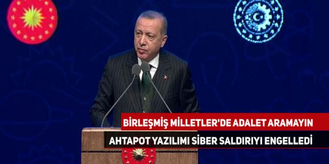 Beştepe’de TÜBİTAK ve TÜBA ödül töreninde konuşan Cumhurbaşkanı Erdoğan, Birleşmiş Milletler’i ve bünyesindeki Güvenlik Konseyi’ni eleştirdi. Erdoğan, “BM’de adalet diye bir şey beklemeyin, aramayın, yok böyle bir şey” ifadelerini kullandı.