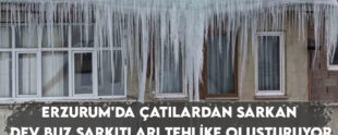 Erzurum’da çatılardan sarkan dev buz sarkıtları tehlike oluşturuyor