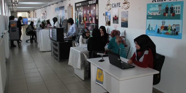 Erzurum Cumhuriyet Mesleki ve Teknik Anadolu Lisesinde öğrenciler oluşturdukları sokakla İngilizceyi uygulamalı öğreniyor.