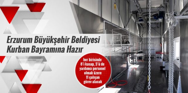 Büyükşehir Belediye Başkanı Mehmet Sekmen’in talimatıyla planlanan bayram tedbirleri kapsamında Kurban ibadetinin usulüne uygun bir biçimde yapılması kadar, insan ve çevre sağlığı da ön planda tutuldu. Erzurum Büyükşehir Belediyesi, her yıl olduğu gibi, bu yıl da kurban satış ve kesim işlemleri için özel alanlar oluşturdu. Palandöken ilçe sınırları dâhilindeki İhsan Doğramacı Bulvarı ile Yakutiye’ye bağlı Çayırtepe Mahallesi Kuzey Çevre Yolu BOTAŞ yanı mevkii “Kurban satış yerleri” olarak belirlenirken, kentin 8 ayrı noktasında ise, mobil mezbaha sistemi kuruldu. Kurbanlarını mobil mezbahalarda kestirmek isteyen vatandaşlar için Beyaz Masa ’ya başvuru yapma kolaylığı getirilirken, kesim başvurusu için de, en son gün 10 Ağustos 2019 mesai bitimi olarak belirlendi. Böylece dileyen vatandaşlar, kurbanlarını 350 lira karşılığında mobil mezbahalarda kestirebilecek ve Büyükşehir Belediyesi’nin sunduğu bu imkândan faydalanabilecekler.