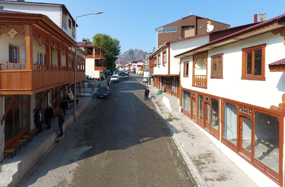 Büyükşehir’in mimar ve mühendisleri, Olur ilçesinde de yine harika bir çalışmaya daha imza attı. Olur’un ilçe merkezindeki binalar geleneksel mimari özellikleri kapsamında yenilendi. Sokak sağlıklaştırma çalışmalarında tarihi dokuya uyan geleneksel ahşap malzeme kullanıldı.