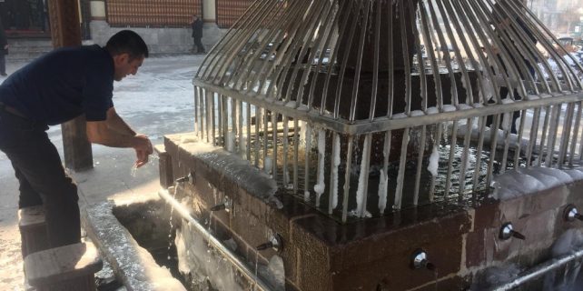 Erzurum’da Lala Paşa Cami’inde öğle namazını kılmaya gelen vatandaşlar ise buz tutan şadırvanda abdestlerini güçlükle aldılar.