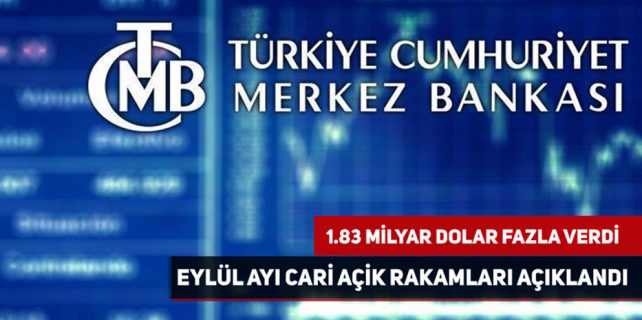 Ödemeler dengesi eylül ayında 1 milyar 830 milyon dolar fazla verirken, 12 aylık cari açık ise 46 milyar 58 milyon dolar oldu.