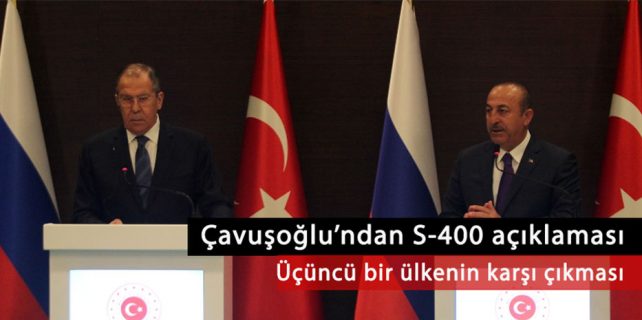 Dışişleri Bakanı Mevlüt Çavuşoğlu, S-400’lerle ilgili “Rusya ile bir anlaşma imzaladık. Bu anlaşma geçerlidir ve şimdi teslimat ne zaman olacak bunu konuşuyoruz. İki ülke arasındaki anlaşmaya üçüncü bir ülkenin karşı çıkması ve başka türlü karar alması uluslararası hukuka aykırıdır” dedi.