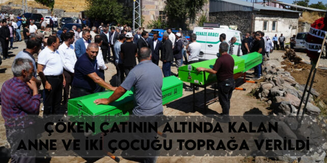 Çöken çatının altında kalan anne ve iki çocuğu toprağa verildi