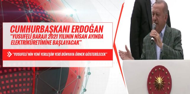 Tamamlandığında 270 metre gövde yüksekliği ile Türkiye’nin en yüksek, dünyanın ise 3. en yüksek barajı olacak Yusufeli Barajı’nın 2021 yılının Nisan ayında elektrik üretimine başlayacağını dile getiren Cumhurbaşkanı Erdoğan, “Ülkemize yılda 1 milyar 888 milyon kw/saat enerji üretecek bu eserin fiziki gerçekleşme oranı yüzde 70’i buldu. İnşallah 2021 yılının Nisan ayında burada elektrik üretimi başlayacaktır. Önümüzdeki fazla bir zaman yok. Hızlı ilerliyoruz. Bitireceğiz. Ondan sonra açılışına geleceğiz. Barajda üretilecek enerjinin ülkemizin katkısı yılda 1 milyar 250 milyon lira olacak. Bu üretim gücüyle baraj 7 yılda kendini amorti edebilme kabiliyetine sahiptir. Bay Kemal’in dediği gibi değil. Bunlar hesap kitap bilmez. Bunlar sadece atılan bu adımları nasıl engelleriz buna bakarlar” diye konuştu.