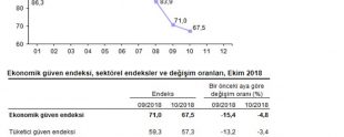 Ekonomik güven endeksi Ekim’de yüzde 4,8 azalarak 67,5 oldu. Türkiye İstatistik Kurumu (TÜİK), 2018 yılı...