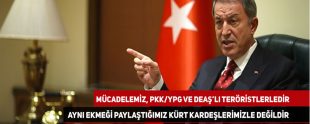 Milli Savunma Bakanı Hulusi Akar, “TSK’nın mücadelesi yüzyıllardır aynı coğrafyayı, aynı ekmeği paylaştığımız Kürt kardeşlerimizle...