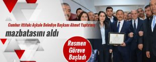 CUMHUR İTTİFAKI AŞKALE BELEDİYE BAŞKANI AHMET YAPTIRMIŞ MAZBATASINI ALARAK RESMEN GÖREVE BAŞLADI.
