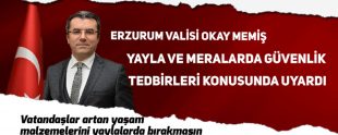 Erzurum Valisi Okay Memiş, yayla ve meralarda güvenlik tedbirleri konusunda uyardı. Türkiye Cumhuriyetinin toprak bütünlüğünü,...