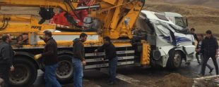 ERZURUM-ÇAT KARAYOLUNDA FRENİ PATLAYAN VİNÇ BARİYERLERE ÇARPARAK YAN YATTI. YOLA DEVRİLEN VİNÇ SEBEBİYLE DURMA NOKTASINA...