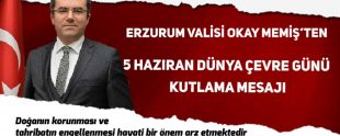 ERZURUM VALİSİ OKAY MEMİŞ, 5 HAZİRAN DÜNYA ÇEVRE GÜNÜ DOLAYISIYLA BİR MESAJ YAYINLADI.