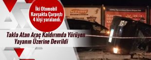 ERZURUM’DA MEYDANA GELEN TRAFİK KAZASINDA KAVŞAKTA OTOMOBİLE ÇARPARAK TAKLA ATAN OTOMOBİL YAYA KALDIRIMINA ÇIKARAK YOLDAN...