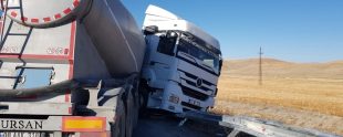 ERZURUM’UN AŞKALE İLÇESİNDE MEYDANA GELEN TRAFİK KAZASINDA SÜRÜCÜSÜNÜN DİREKSİYON HAKİMİYETİNİ KAYBETTİĞİ TIR, YOLUN ORTASINDA KARŞI...