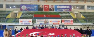 ERZURUM'DA BİR ARAYA GELEN MİNİK SHORT TRACK (SÜRAT PATENİ) SPORCULARI, BUZ PİSTİNDE DEV TÜRK BAYRAĞI...
