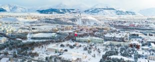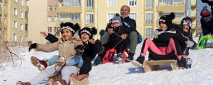 ERZURUM’DA SÖMESTR TATİLİNE ÇIKAN ÇOCUKLAR KAR ÜZERİNDE KIZAKLA KAYARAK EĞLENDİ