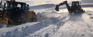 YOL AÇMAYA GİDEN GREYDER FIRTINADA KARA SAPLANDI
