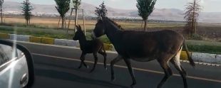 ERZURUM’DA BAŞIBOŞ BİR EŞEK VE YAVRUSU KARAYOLUNA ÇIKTI. YAVAŞ ADIMLARLA YOLDA İLERLEYEN EŞEKLER SÜRÜCÜLERE ZOR...